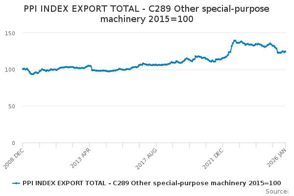 Download this time seriesPPI INDEX EXPORT TOTAL - C289 Other special-purpose machinery 2015=100