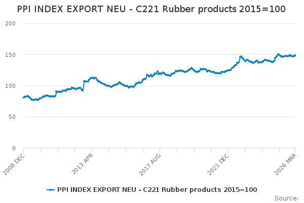 Download this time seriesPPI INDEX EXPORT NEU - C221 Rubber products 2015=100