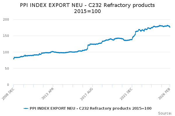 Download this time seriesPPI INDEX EXPORT NEU - C232 Refractory products 2015=100