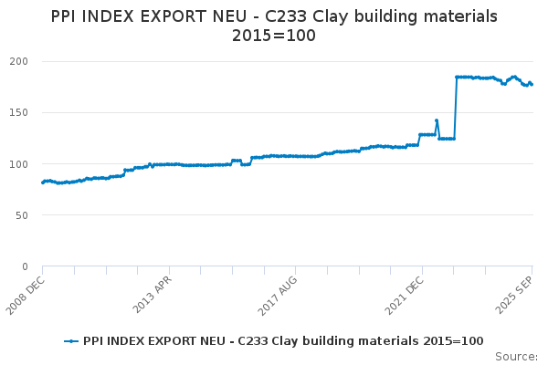 Download this time seriesPPI INDEX EXPORT NEU - C233 Clay building materials 2015=100