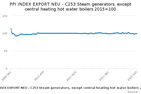 Download this time seriesPPI INDEX EXPORT NEU - C253 Steam generators, except central heating hot water boilers 2015=100