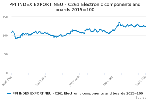 Download this time seriesPPI INDEX EXPORT NEU - C261 Electronic components and boards 2015=100