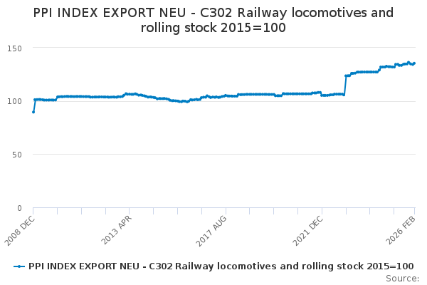 Download this time seriesPPI INDEX EXPORT NEU - C302 Railway locomotives and rolling stock 2015=100