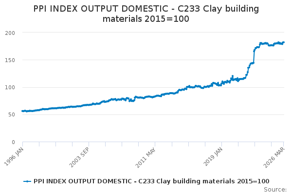 Download this time seriesPPI INDEX OUTPUT DOMESTIC - C233 Clay building materials 2015=100