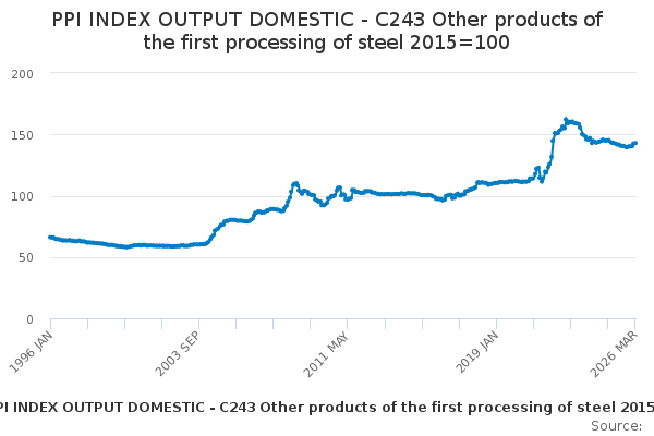 Download this time seriesPPI INDEX OUTPUT DOMESTIC - C243 Other products of the first processing of steel 2015=100