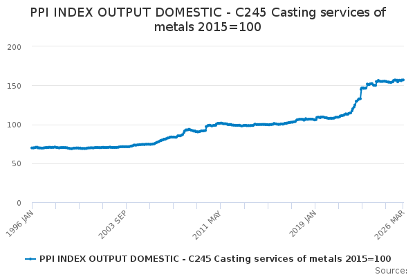Download this time seriesPPI INDEX OUTPUT DOMESTIC - C245 Casting services of metals 2015=100