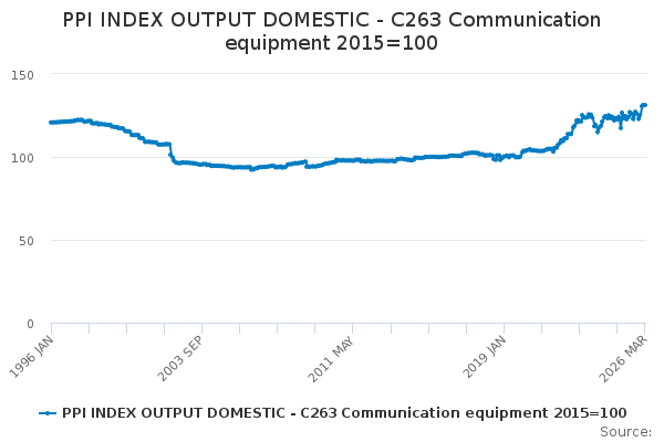 Download this time seriesPPI INDEX OUTPUT DOMESTIC - C263 Communication equipment 2015=100