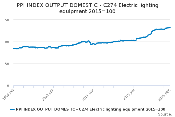 Download this time seriesPPI INDEX OUTPUT DOMESTIC - C274 Electric lighting equipment 2015=100