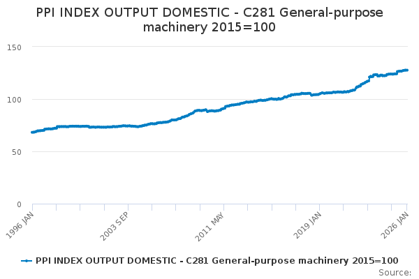 Download this time seriesPPI INDEX OUTPUT DOMESTIC - C281 General-purpose machinery 2015=100