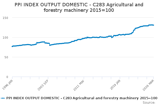 Download this time seriesPPI INDEX OUTPUT DOMESTIC - C283 Agricultural and forestry machinery 2015=100