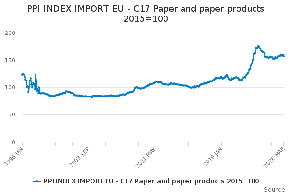 Download this time seriesPPI INDEX IMPORT EU - C17 Paper and paper products 2015=100