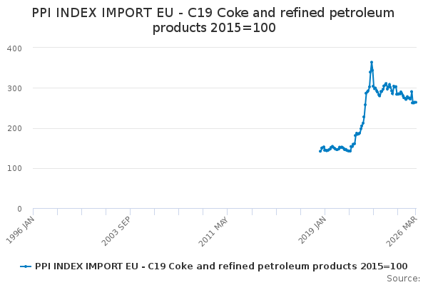 Download this time seriesPPI INDEX IMPORT EU - C19 Coke and refined petroleum products 2015=100