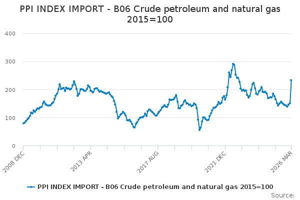 Download this time seriesPPI INDEX IMPORT - B06 Crude petroleum and natural gas 2015=100
