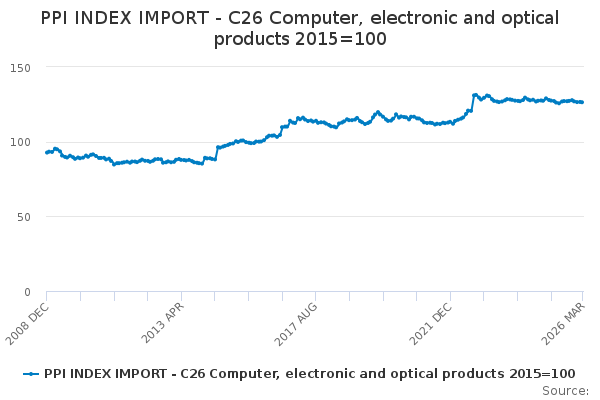Download this time seriesPPI INDEX IMPORT - C26 Computer, electronic and optical products 2015=100