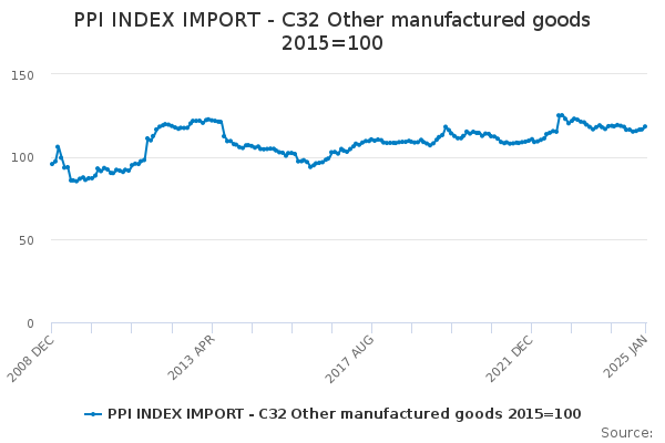 Download this time seriesPPI INDEX IMPORT - C32 Other manufactured goods 2015=100