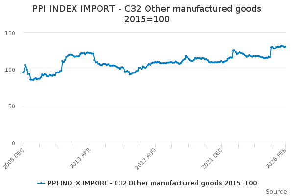 Download this time seriesPPI INDEX IMPORT - C32 Other manufactured goods 2015=100