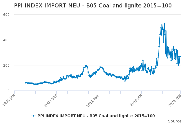 Download this time seriesPPI INDEX IMPORT NEU - B05 Coal and lignite 2015=100