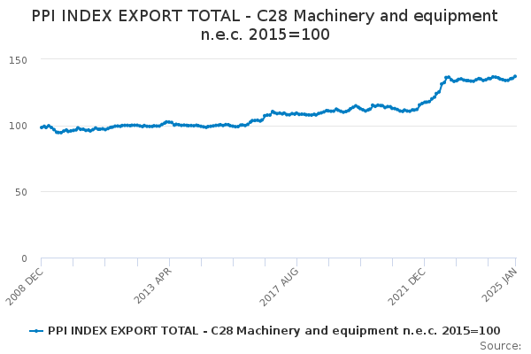 Download this time seriesPPI INDEX EXPORT TOTAL - C28 Machinery and equipment n.e.c. 2015=100
