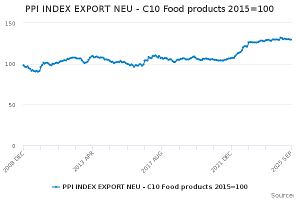 Download this time seriesPPI INDEX EXPORT NEU - C10 Food products 2015=100