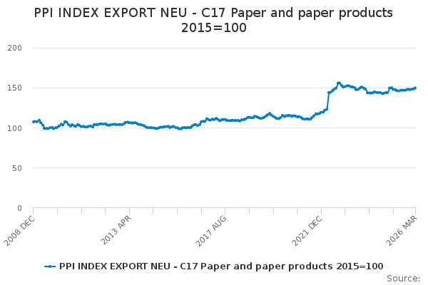 Download this time seriesPPI INDEX EXPORT NEU - C17 Paper and paper products 2015=100
