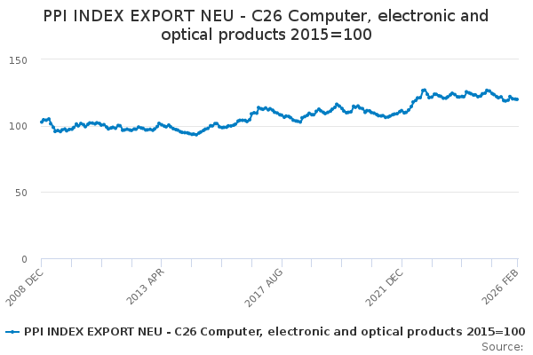 Download this time seriesPPI INDEX EXPORT NEU - C26 Computer, electronic and optical products 2015=100
