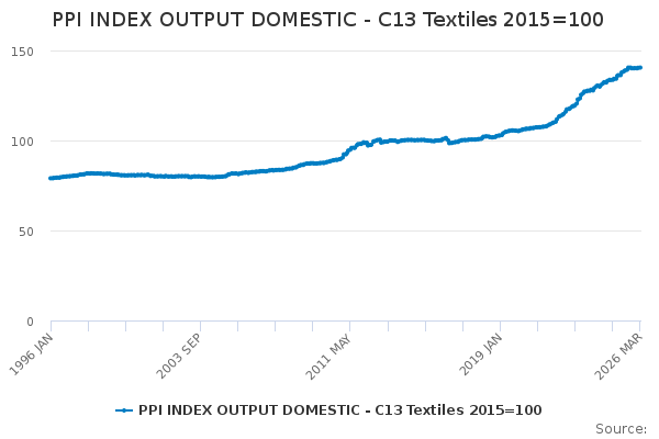 Download this time seriesPPI INDEX OUTPUT DOMESTIC - C13 Textiles 2015=100