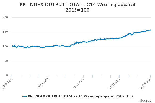 Download this time seriesPPI INDEX OUTPUT TOTAL - C14 Wearing apparel 2015=100