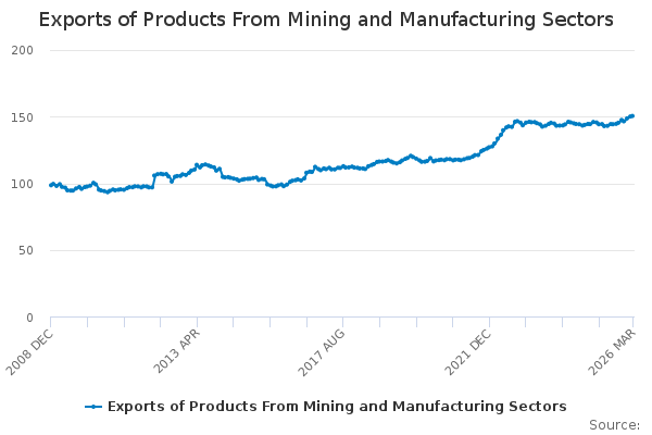 Download this time seriesExports of Products From Mining and Manufacturing Sectors