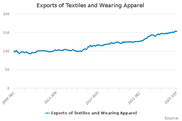 Download this time seriesExports of Textiles and Wearing Apparel