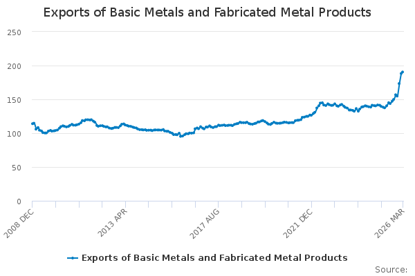 Download this time seriesExports of Basic Metals and Fabricated Metal Products