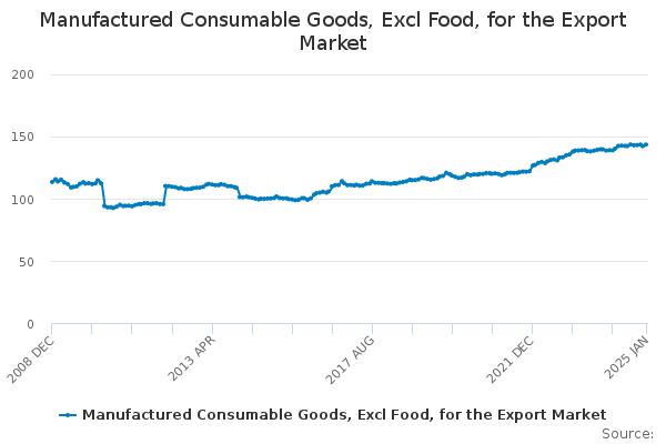 Download this time seriesManufactured Consumable Goods, Excl Food, for the Export Market