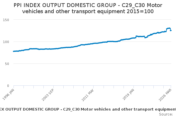 Download this time seriesPPI INDEX OUTPUT DOMESTIC GROUP - C29_C30 Motor vehicles and other transport equipment 2015=100