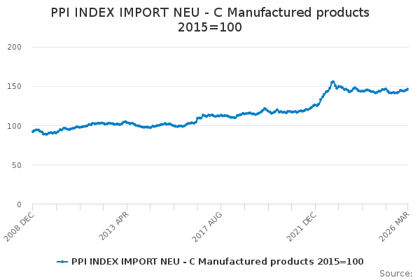 Download this time seriesPPI INDEX IMPORT NEU - C Manufactured products 2015=100