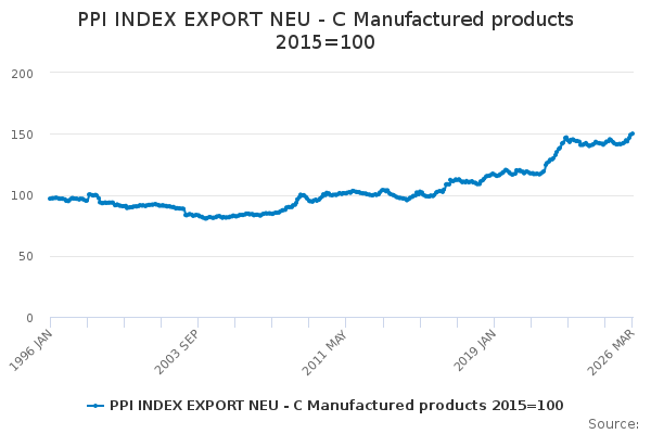 Download this time seriesPPI INDEX EXPORT NEU - C Manufactured products 2015=100
