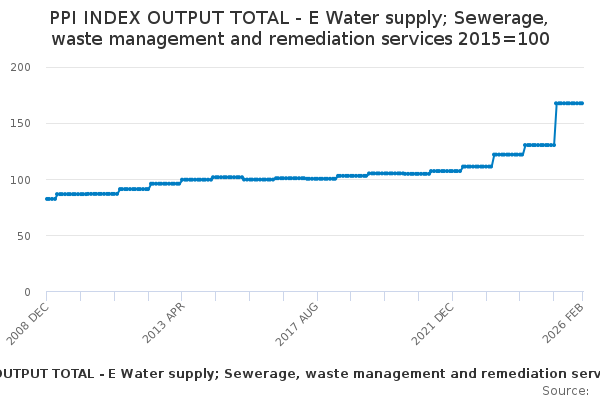 Download this time seriesPPI INDEX OUTPUT TOTAL - E Water supply; Sewerage, waste management and remediation services 2015=100