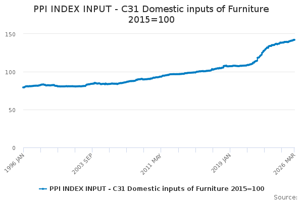 Download this time seriesPPI INDEX INPUT - C31 Domestic inputs of Furniture 2015=100