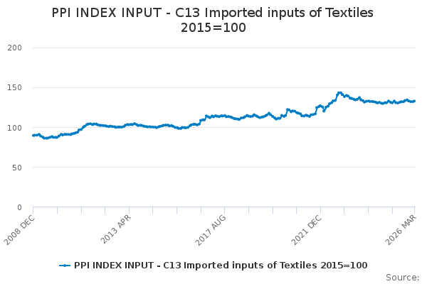 Download this time seriesPPI INDEX INPUT - C13 Imported inputs of Textiles 2015=100