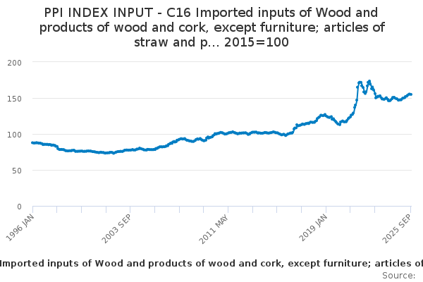 Download this time seriesPPI INDEX INPUT - C16 Imported inputs of Wood and products of wood and cork, except furniture; articles of straw and p... 2015=100
