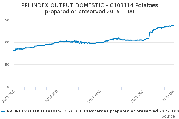 Download this time seriesPPI INDEX OUTPUT DOMESTIC - C103114 Potatoes prepared or preserved 2015=100