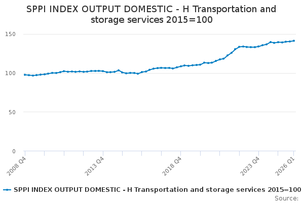 Download this time seriesSPPI INDEX OUTPUT DOMESTIC - H Transportation and storage services 2015=100