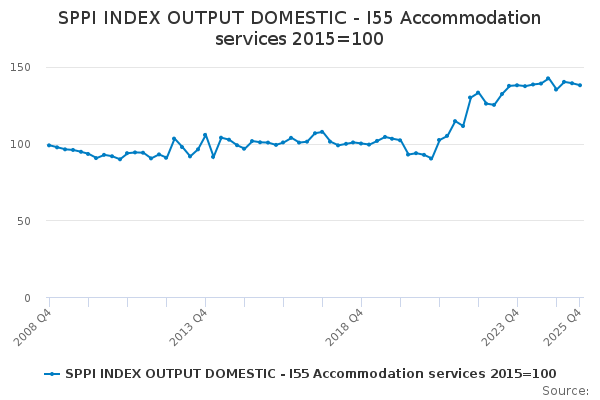 Download this time seriesSPPI INDEX OUTPUT DOMESTIC - I55 Accommodation services 2015=100