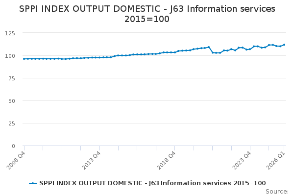Download this time seriesSPPI INDEX OUTPUT DOMESTIC - J63 Information services 2015=100