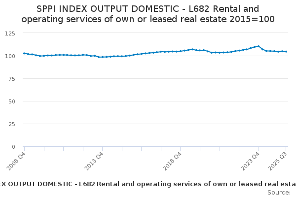 Download this time seriesSPPI INDEX OUTPUT DOMESTIC - L682 Rental and operating services of own or leased real estate 2015=100