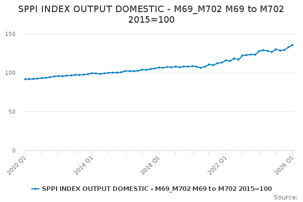 Download this time seriesSPPI INDEX OUTPUT DOMESTIC - M69_M702 M69 to M702 2015=100