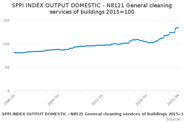 Download this time seriesSPPI INDEX OUTPUT DOMESTIC - N8121 General cleaning services of buildings 2015=100