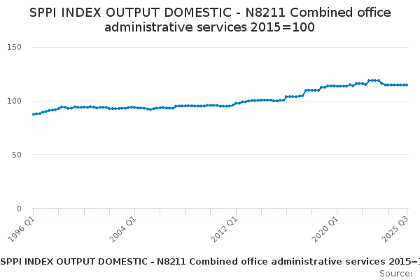Download this time seriesSPPI INDEX OUTPUT DOMESTIC - N8211 Combined office administrative services 2015=100