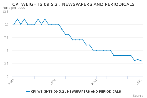 Download this time seriesCPI WEIGHTS 09.5.2 : NEWSPAPERS AND PERIODICALS