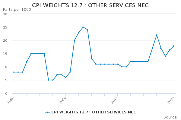 Download this time seriesCPI WEIGHTS 12.7 : OTHER SERVICES NEC