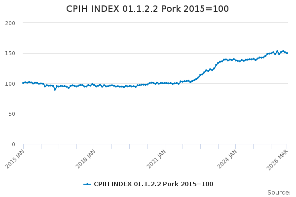 Download this time seriesCPIH INDEX 01.1.2.2 Pork 2015=100