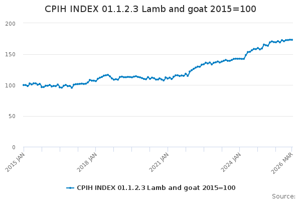 Download this time seriesCPIH INDEX 01.1.2.3 Lamb and goat 2015=100
